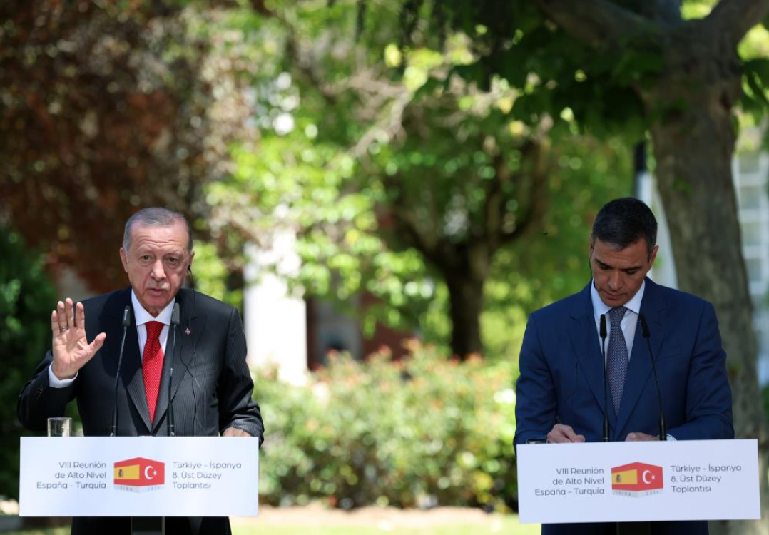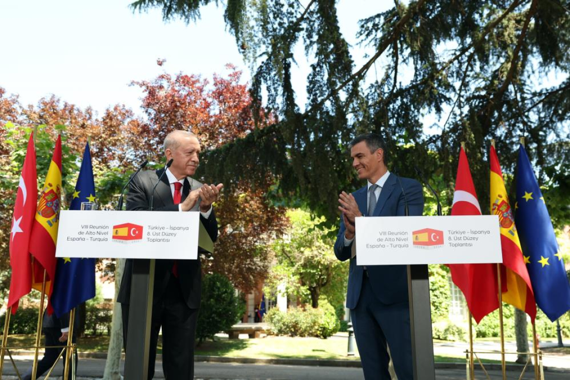 Cumhurbaşkanı Recep Tayyip Erdoğan, İspanya Başbakanı Pedro Sanchez ile düzenlediği basın toplantısında, "İspanya, Türkiye'nin AB üyeliğine destek verdi" ifadelerini kullanarak, “İspanya, 2015'ten bu yana ülkemizde konuşlu hava savunma sistemleriyle hem müttefik olarak Türkiye'nin hem de NATO'nun kolektif güvenliğine destek veriyor” dedi.