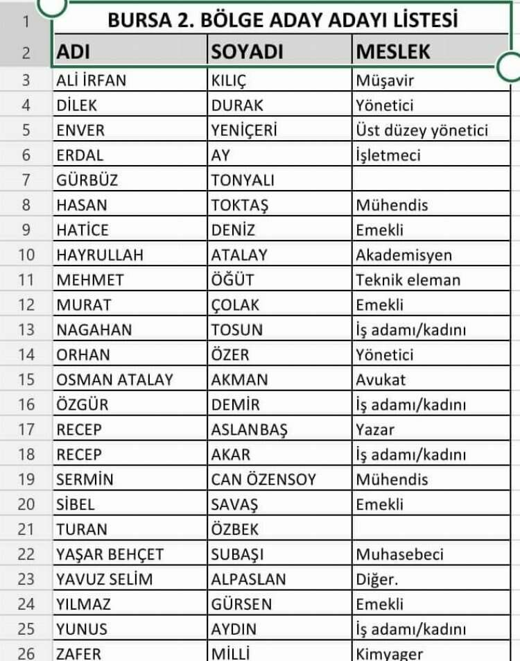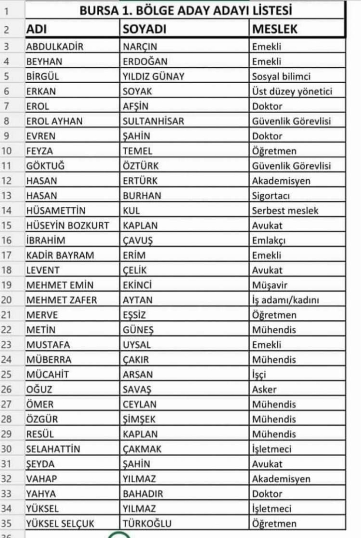 İşte İYİ Parti'nin Bursa aday adayları listesi: