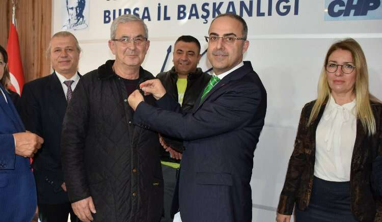 Memleket Partisi Bursa'dan istifa eden üyelere, Cumhuriyet Halk Partisi İl Başkanı Turgut Özkan tarafından rozet takdimi yapıldı.