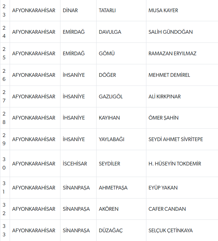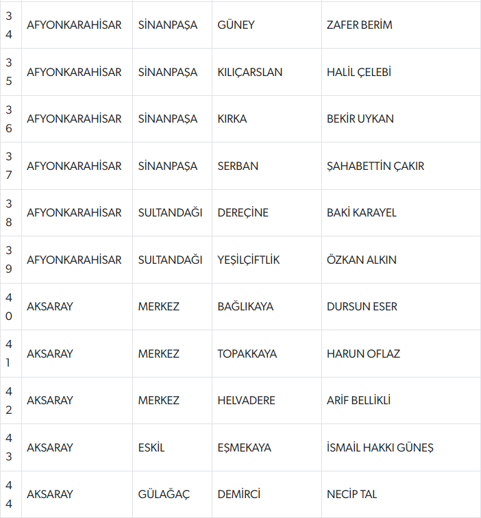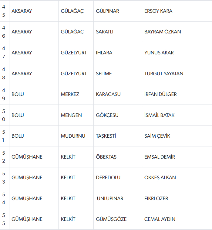 Açıklanan listede şu isimler yer alıyor;