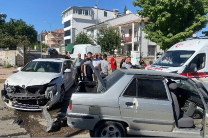 İnegöl'de kontrolden çıkan otomobil bariyerlere çarptı: 1'i ağır 2 kişi yaralandı