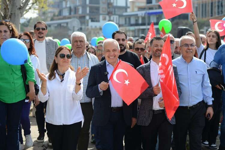 Şadi Özdemir, konuşmanın ardından, Seçim Koordinasyon Merkezi önünde toplanan coşkulu kalabalıkla birlikte FSM’den Podyumpark’a yürüdü. Bando eşliğinde gerçekleşen yürüyüş boyunca çevredeki vatandaşlar da alkışlarla Şadi Özdemir’e destek verdi.