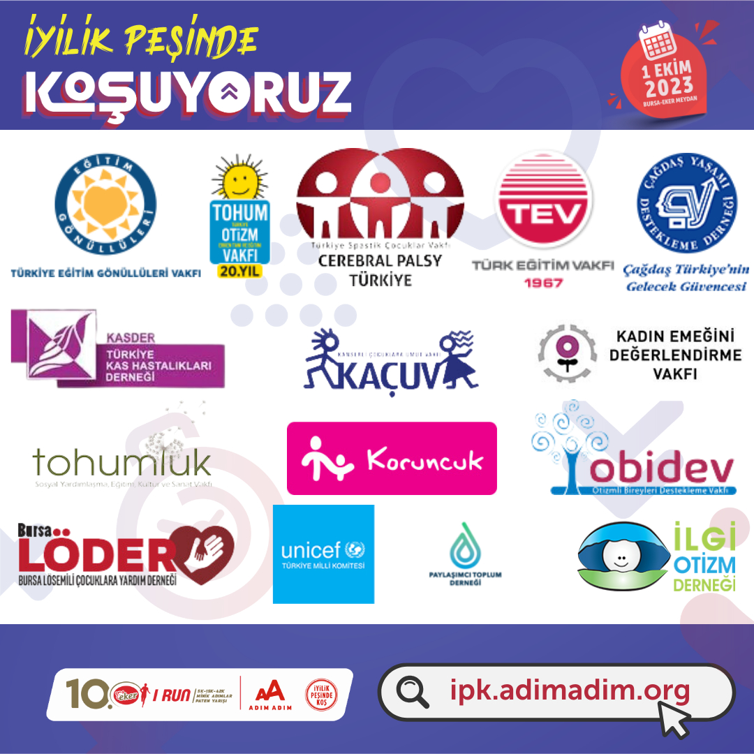 Bursa Lösemili Çocuklara Yardım Derneği (LÖDER), Çağdaş Yaşamı Destekleme Derneği (ÇYDD), İlgi Otizm Derneği, Kanserli Çocuklara Umut Vakfı (KAÇUV), Türkiye Kas Hastalıkları Derneği (KASDER), Kadın Emeğini Değerlendirme Vakfı (KEDV), Koruncuk Vakfı, Otizmli Bireyleri Destekleme Vakfı (OBİDEV), Paylaşımcı Toplum Derneği, Türkiye Eğitim Gönüllüleri Vakfı (TEGV), Türk Eğitim Vakfı (TEV), Tohumluk Sosyal Yardımlaşma Eğitim Kültür ve Sanat Vakfı, Tohum Türkiye Otizm Erken Tanı ve Eğitim Vakfı, Türkiye Spastik Çocuklar Vakfı (TSÇV), UNICEF Türkiye Milli Komitesi.