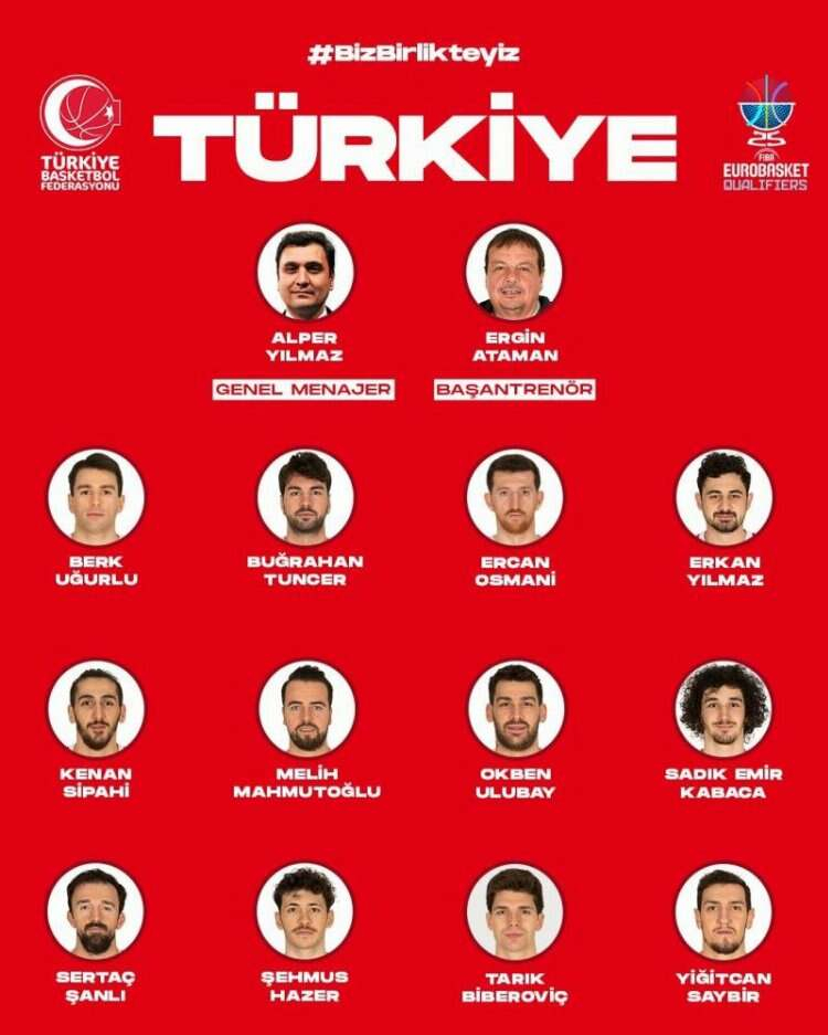 FIBA EuroBasket 2025 Elemeleri B Grubu ilk maçında bu akşam deplasmanda İtalya karşısında parkeye çıkacak olan A Milli Erkek Basketbol Takımı'nın 12 kişilik kadrosu açıklandı.