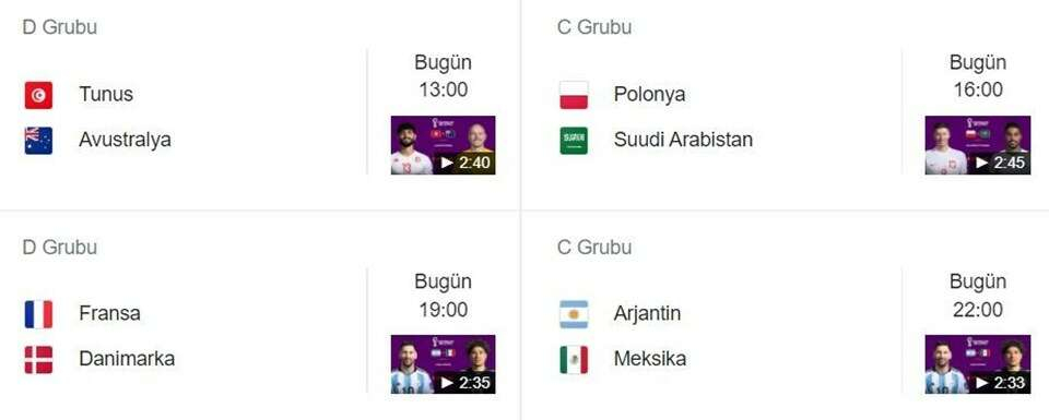 2022 Dünya Kupası grup karşılaşmaları futbolseverler tarafından yakından takip ediliyor. Dünya Kupası'nda 32 takım 8 grupta mücadele ediyor. 2022 FIFA Dünya Kupası'nda C ve D gruplarında oynanacak maçlar ile devam edecek.