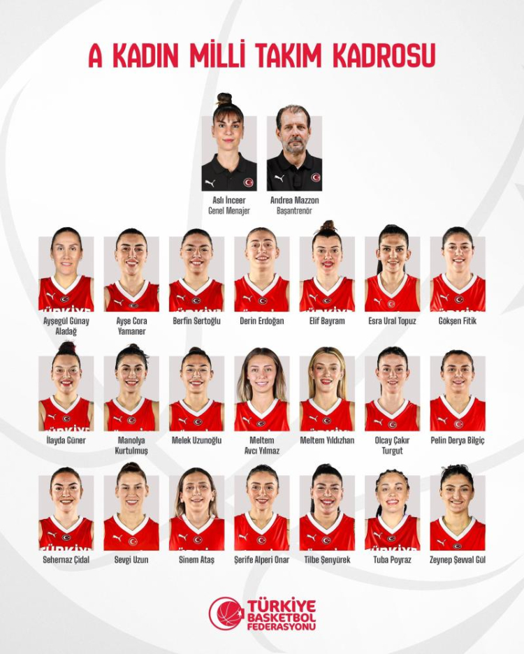 A Milli Kadın Basketbol Takımı'nın kamp kadrosu şu şekilde: