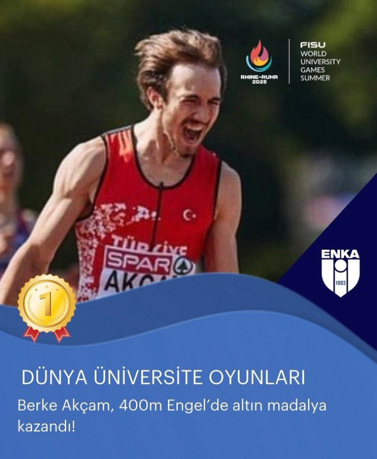 Ülkesini ve üniversitesini uluslararası arenada başarıyla temsil eden milli atlet Berke Akçam, 21-23 Temmuz tarihleri arasında Almanya'nın Bochum kentinde düzenlenen FISU 2025 Dünya Üniversite Yaz Oyunları'nda büyük bir zafere imza attı. Akçam, yarıştığı atletizm 400 metre engelli branşında 49.29 saniyelik derecesiyle altın madalyanın sahibi oldu.