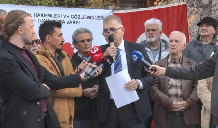 Türkiye Futbol Hakemleri ve Gözlemcileri Sosyal Dayanışma Vakfı, TFF Balgat Ofisi önünde 'bahis ve şike' soruşturmasına dair basın açıklaması düzenledi.