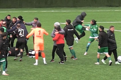 Rize'de oynanan Veliköyspor-Ünye 1957 Spor karşılaşmasında kavga çıkınca ortaya da spora yakışmayan görüntüler çıktı.