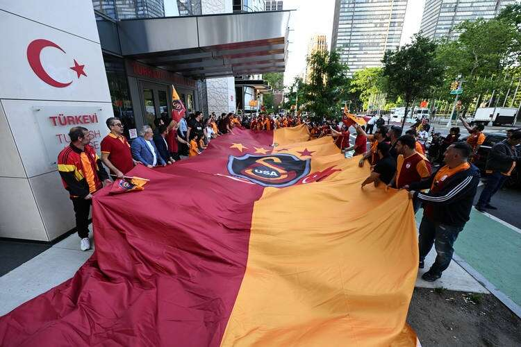 New York ve civarında yaşayan Galatasaray taraftarları, ellerinde sarı kırmızı bayrakları ile konvoy halinde geldikleri Türkevi binası önünde tezahürat yaparak şampiyonluğun tadını çıkardı.