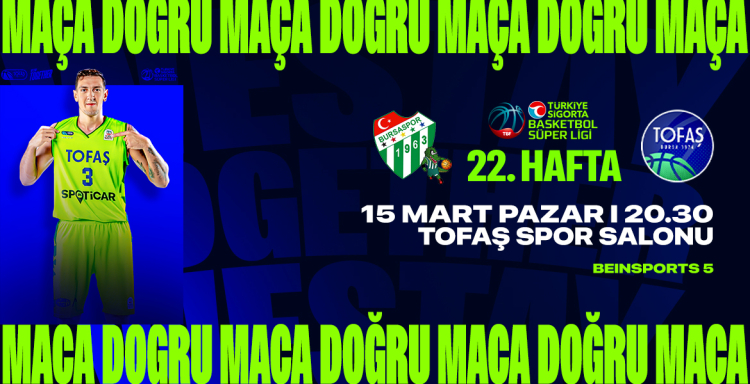 Türkiye Sigorta Basketbol Süper Ligi 22. haftasında TOFAŞ, Bursaspor Basketbol’a konuk oluyor. Ligde 9 galibiyet-12 mağlubiyet ile 9. sırada yer alan ve oynadığı son 2 resmi maçta sahasında Safiport Erokspor’a 81-91; Basketbol Şampiyonlar Ligi’nde ise AEK B.C.’ye deplasmanda 96-88 kaybeden Mavi Yeşilliler, Bursa derbisinden galibiyetle ayrılarak bu gidişata bir son vermeyi hedeflerken; 6 galibiyet-15 mağlubiyet ile 13. sırada bulunan Bursaspor Basketbol ise bu maç öncesinde oynadığı son 6 maçtan mağlubiyetle ayrıldı.