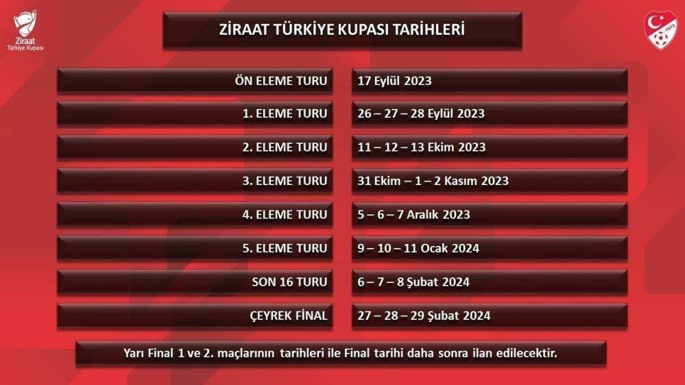 Ziraat Türkiye Kupası'nda 2023-2024 sezonunun maç tarihleri ve kulüplerin turlara göre katılım durumları belli oldu.