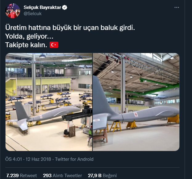 Baykar Teknoloji Lideri Selçuk Bayraktar, Twitter hesabından heyecanlandıran bir açıklama yaptı. Bayraktar "Üretim hattına 3 buçuk yıl sonra daha büyük ve daha çevik bir balık girdi. MİUS - İnsansız Savaş Uçağı: Bayraktar KIZILELMA. Yolda geliyor, takipte kalın" ifadelerini kullandı.