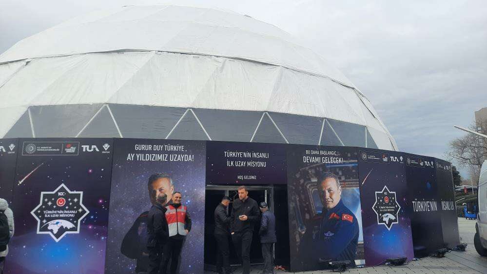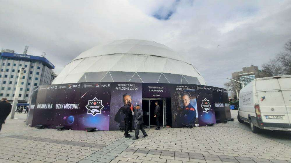 Türkiye'nin ilk uzay yolculuğunun canlı olarak izlenebilmesi için Taksim Meydanı'nda planetaryum kuruldu. Fırlatmaya kısa bir süre kala planetaryumdaki hazırlıkların devam ettiği görüldü.