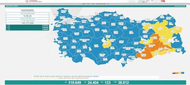 Sağlık Bakanlığı tarafından açıklanan tabloda, 2 doz aşılama verilerine de yer verildi. En az 2 doz aşı olmuş 18 yaş üzeri nüfusu kapsayan verilere göre Türkiye'de 2. doz aşılama ortalama yüzde 85,23 oldu. 1. doz ortalaması yüzde 93,02 olurken, 1., 2. ve 3. doz aşısını olan vatandaş sayısı toplamda 146 milyon 273 bin 906'e yükseldi.