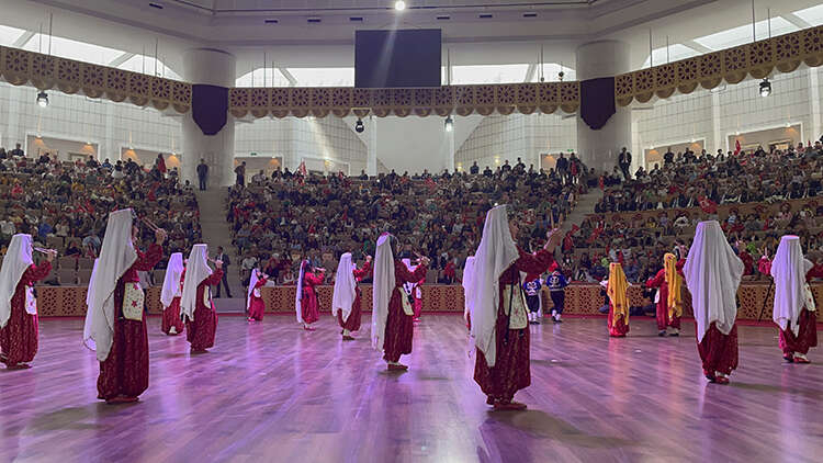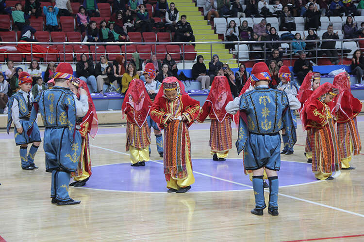 Burada öğrenciler, şiirler okudu, halk oyunları ve çeşitli akrobasi gösterileri sundu.