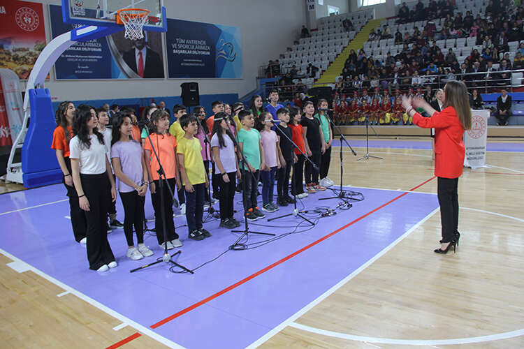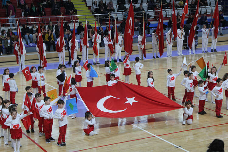 Tören, kentte bulunan Merkez Spor Salonu'nda öğrencilerin sunduğu etkinliklerle devam etti.