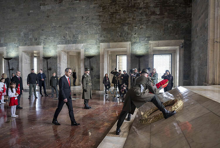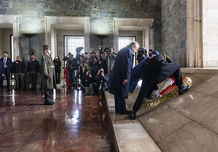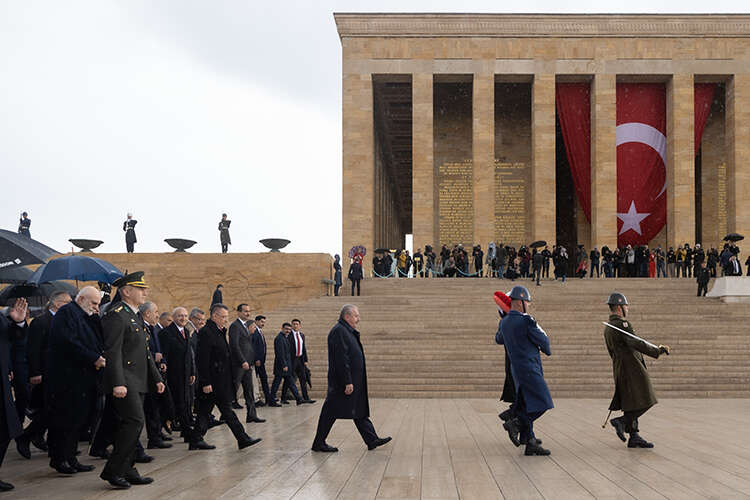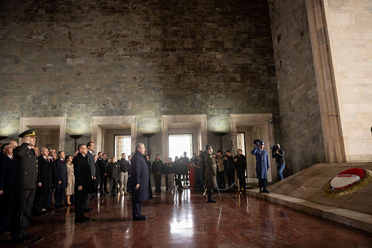 Özer'in mozoleye çelenk bırakmasının ardından saygı duruşunda bulunuldu ve İstiklal Marşı okundu.