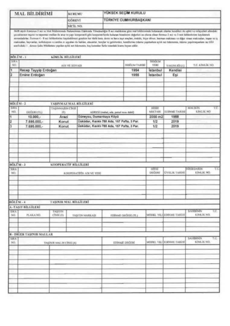 YSK kararında Cumhurbaşkanı Erdoğan ile eşi Emine Erdoğan’ın mal varlığına yer verildi.