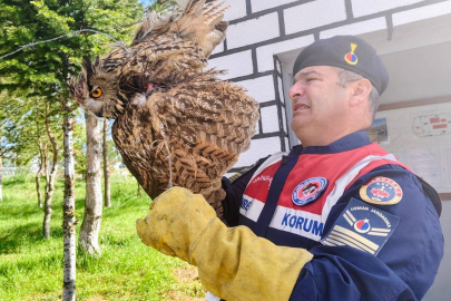 Yozgat İl Jandarma Komutanlığı Çevre Doğa ve Hayvanları Koruma Timi ekipleri, doğada yaralı halde puhu kuşu buldu.