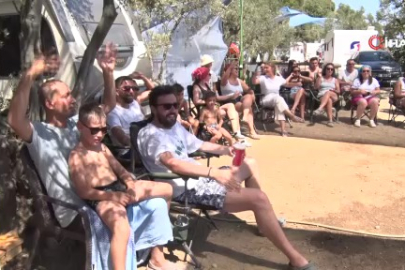 Termometrelerin 40 dereceyi gösterdiği Bursa'nın Mustafakemalpaşa ilçesinde sıcaktan bunalan gençler sulama kanalında yüzerek serinledi.