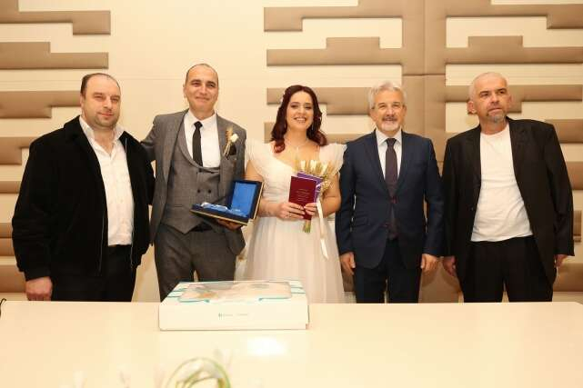 Nilüfer Belediyesi Nikah Evi’nde evliliğe adım atan 5 çiftin nikahını kıyan Başkan Turgay Erdem, onların mutluluklarına ortak oldu. Başkan Erdem, çiftlere teslim etmek üzere evlilik cüzdanını şahitlere verirken, gelin ile damada da İstanbul Sözleşmesi verdi. Çiftlere ömür boyu mutluluk dileyen Nilüfer Belediye Başkanı Turgay Erdem, günün anısına hediyeler de verdi.