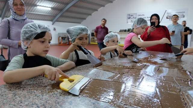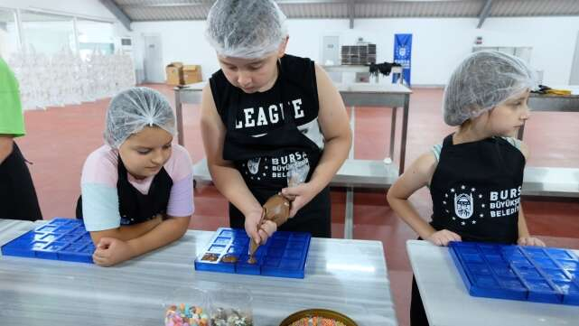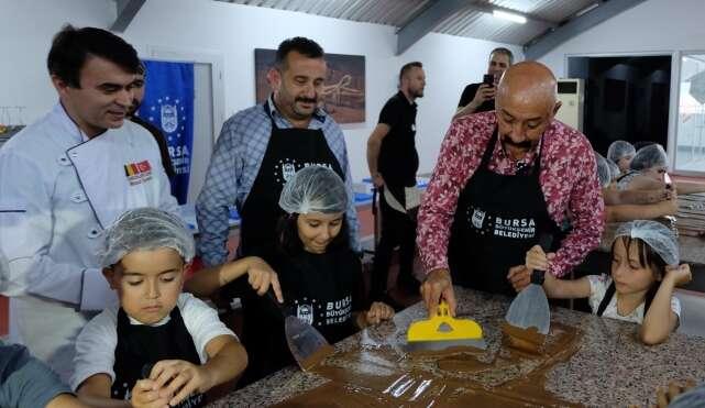 Bursa Çikolata Müzesi’ndeki atölye çalışmasına katılan çocuklar, ünlü çikolata şefi Mesut Kırımlı’dan çikolata yapmayı öğrendi.