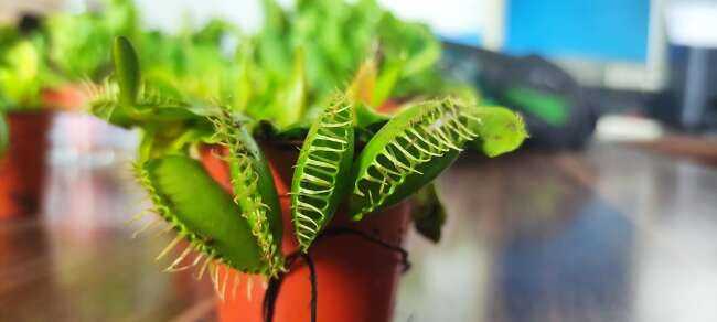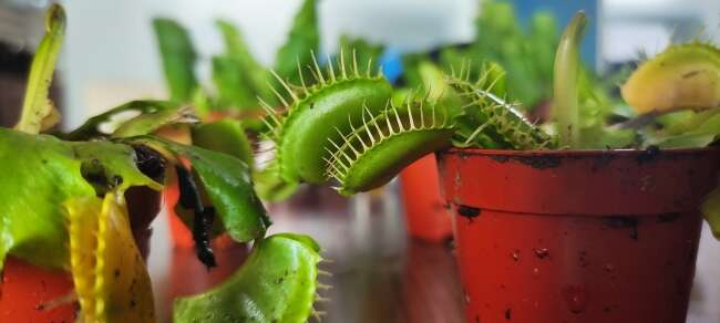 Sinekkapan ve böcekkapan bitkisi, Dionaea muscipula familyasından olan ve sulak alanlarda yetişen, böcek ve örümcekgiller ile beslenen bu bitkiyi Bursalı çiçekçi Murat Karakoç, Hollanda'dan ithal ediyor.