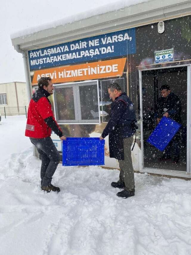 Mustafakemalpaşa Belediyesi ekipleri, ilçe genelinde karla mücadele çalışmalarını sürdürürken, Sosyal Yardım İşleri Müdürlüğü de barınma ihtiyacı olan ve sokakta kalanların yardımına yetişiyor.