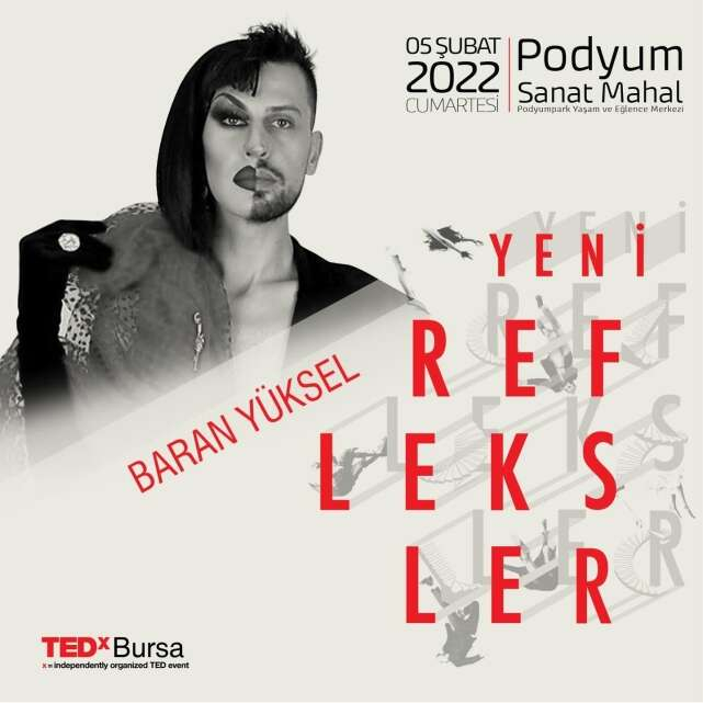 “Yeni Refleksler” temasıyla 5’incisi düzenlenecek ve Tedx Bursa severleri bir araya getirecek olan etkinliğin henüz tüm konuşmacıları açıklanmadı fakat duyurusu yapılan bu yılki partnerleri arasında; Uğur Batı, Ebru Baybara Demir, Tolga Akış, Gökçe Erhan ve Baran Yüksel yer alıyor.