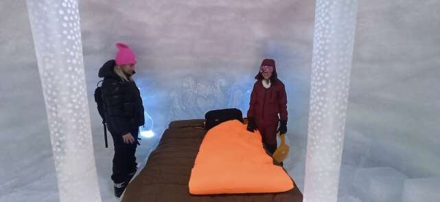 Yaklaşık 4 ay önce yapılan iglo ev ise, halen aynı ihtişamıyla ayakta durması dikkat çekti. Buzdan evin içinde konaklayan misafirler uyku tulumlarıyla uyurken, herhangi bir ısınma sistemi olmamasına rağmen sıcaklık dışarıya göre 7 derece daha yüksek olarak ölçülüyor. Buzdan evler misafirlere bungalov evlerle birlikte kiralanıyor. Farklı bir deneyim yaşamak isteyen misafirler isterlerse bungalov evlerde kalıyor ya da iglo evlerde geceleyebiliyor.