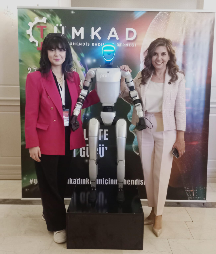 'Civan' isimli UNITREEG1 İnsansı Robot'un tanıtımı yapılırken heyecan doruktaydı; elini kaldırıp selam veren, merdiven çıkıp, inebilen ve dans eden 'Civan', katılımcıların yoğun ilgisini çekti.