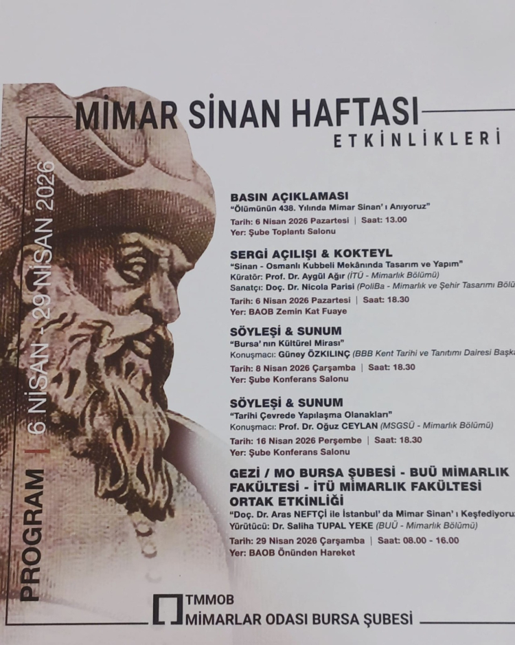 “Sinan mimarlığının belki de en önemli özelliği, her bir yapısının ‘o’ yere özgü tasarlanmış olması ve ‘biriciklik’ değeri taşımasıdır” ifadesiyle Mimarlar Odası Bursa Şubesi çarpıcı şekilde Mimar Sinan’ı özetledi.