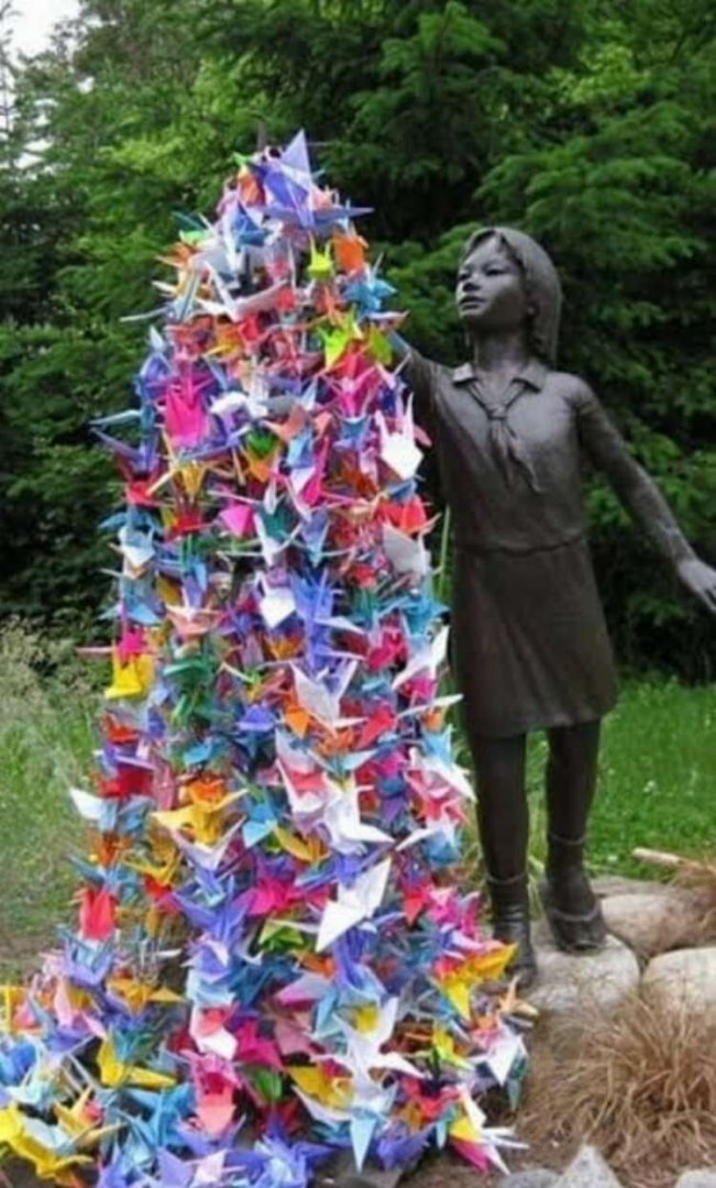 Anısına Hiroşima’da bir anıt var ve ABD’de de Seattle Barış Parkı’nda bir heykeli bulunuyor, elinde de altın turna kuşu!