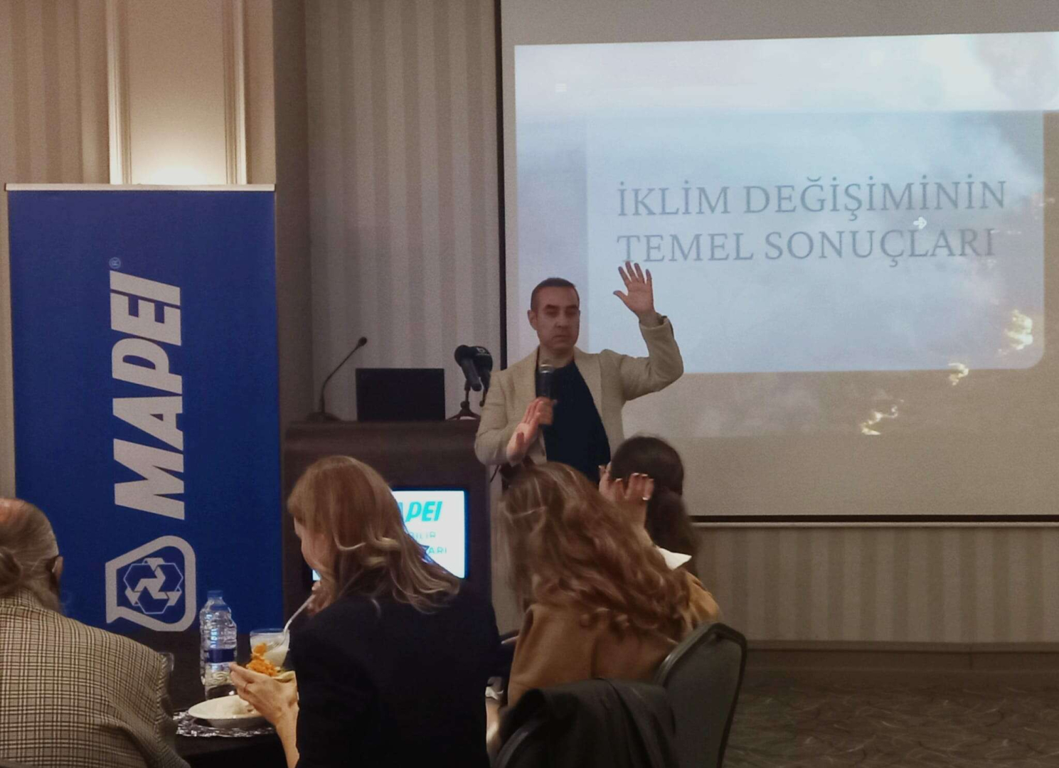 “Sürdürülebilir Kentler İçin Yenilikçi Uygulamalar” başlığı altında konuşmacılar Mapei Türkiye Genel Müdürü Selman Tarmur ve Haber Global Meteoroloji Uzmanı Bünyamin Sürmeli’ydi.