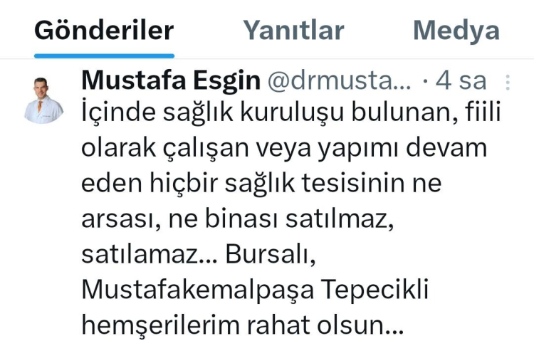 “İçinde sağlık kuruluşu bulunan, fiili olarak çalışan veya yapımı devam eden hiçbir sağlık tesisinin ne arsası, ne binası satılmaz, satılamaz…