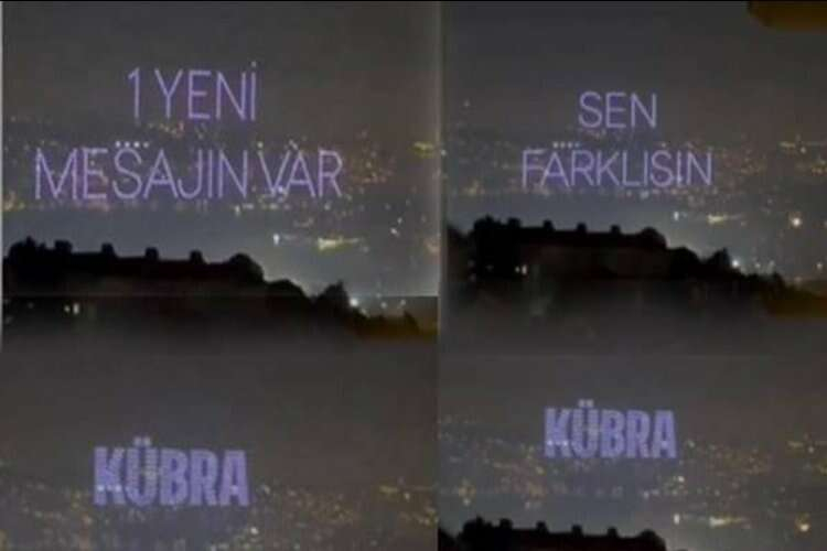 ‘1 mesajınız var. Kübra…’ diye dronlar tarafından oluşturulan yazılar devam ediyor.