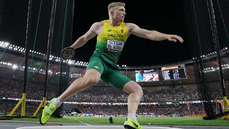 Avrupa Şampiyonu Litvanya’lı Mykolas ALEKNA (doğum:2002,boy:1.94,22 yaşında), ABD’nin Oklahoma eyaletindeki Ramona kasabasında yapılan yarışmalarda, Alman Jürgen Schult’a ait 1986 yılında 74.08 m.lik derecesi ile kırdığı 38 yıllık dünya rekorunu, 74.35 m. ile yenilemeyi başardı. Mykolas ALEKNA’nın kendisi kadar ünlü ve 2000’li yıllarda disk atmada dünyanın en iyi sporcularından olan babası Virgijilus ALEKNA (doğum: 1972,52 yaşında, boy:2.02 m,) (en iyi dereceleri: gülle atma:19.99 m, disk atma:73.88 m.)