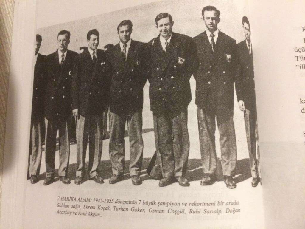 (1948 LONDRA OLİMPİYATLARINA GİDERKEN, SOLDAN SAĞA EKREM KOÇAK,TURHAN GÖKER,OSMAN COŞGÜL, RUHİ SARIALP,DOĞAN ACARBAY. AVNİ AKGÜN)