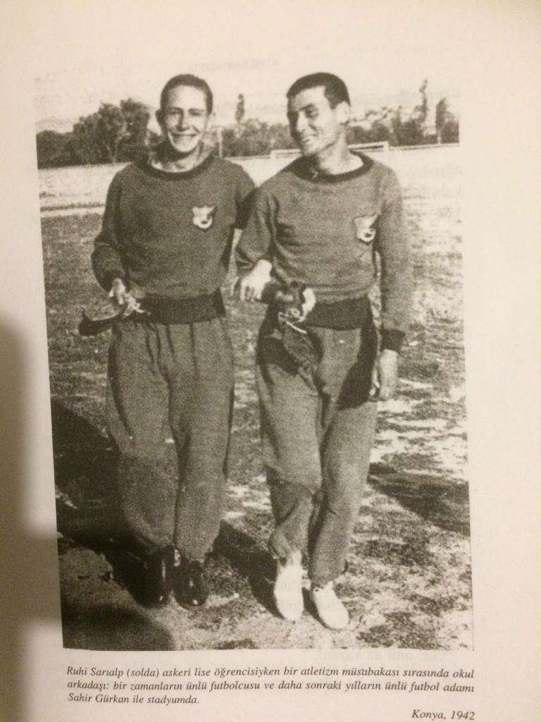 Bu iki askeri lise öğrencisinden birincisi, büyük olanı daha sonra babasının ısrarı ile Konya askeri okuldan ayrılıp İstanbul Haydarpaşa Lisesi’nde eğitimine devam edip, Fenerbahçe Kulübü’ne transfer olduktan sonra şampiyon ve rekortmen bir atlet olup, Türk spor tarihinde 1948 Londra Olimpiyatları’nda 15.075 metrelik atlayışı ile şeref direğine Türk bayrağını çektiren ilk Türk atleti olma şerefini uzun yıllar taşıyan atletizm tarihimizin ölümsüz ismi Ruhi Sarıalp’ti. (Doğum: 15 Aralık 1924, Manisa - Vefat: 3 Mart 2001, İzmir.) Sarıalp bu derecesi ile Dünya 3 adım atlama sıralamasında 100 atlet arasında 7’nci, Avrupa sıralamasında ise 3’üncü sırada yer almayı başarmıştı.