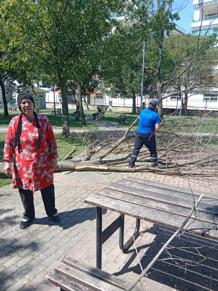 Madenciler Sitesi’nin olduğu bölgede bir yaya yolu ve sarmaşık sıkıntısı olduğunu, halkın yoldan rahatlıkla geçemediğini aktardı. “Kimse yapmadığı için iş başa düştü. Aldım elime makası, tek tek hepsini temizledim… Hiç de gocunmadım…” diyor.