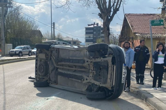 Devrilen araç içerisindeki 3 kişi sıkışarak yaralandı. Kaza, Tepecik Mahallesi Ahmet Baysal Bulvarı üzerinde meydana geldi. Edinilen bilgiye göre, İtfaiye bulvarı istikametinde seyreden M.E.Ç. idaresindeki 14 DU 604 plakalı Fiat marka otomobil, Ahmet Baysal Bulvarı'ndaki dönel kavşaktan dönmeye çalışan B.Y. yönetimindeki 67 TZ 641 plakalı hafif ticari araç ile çarpıştı. Çarpışmanın etkisiyle hafif ticari araç yola devrildi. Araç içerisinde bulunan B.Y., B.K. ve E.K. araç içerisinde sıkışarak yaralandı. Durum 112 Acil Çağrı Merkezi’ne bildirildi. İhbar üzerine bölgeye sağlık, polis ve itfaiye ekipleri sevk edildi. İtfaiye ekipleri, araçta sıkışan yaralıları kısa sürede araçtan çıkararak sağlık ekiplerine teslim etti. Kazada yaralanan vatandaşlar ambulanslarla şehir merkezindeki hastanelere sevk edildi. Otomobil sürücüsü M.E.Ç. kazayı yara almadan atlattı. Devrilen hafif ticari araç çekici yardımıyla bulunduğu yerden kaldırılırken, iki araçta da maddi hasar oluştu. Kazayla ilgili inceleme başlatıldı.