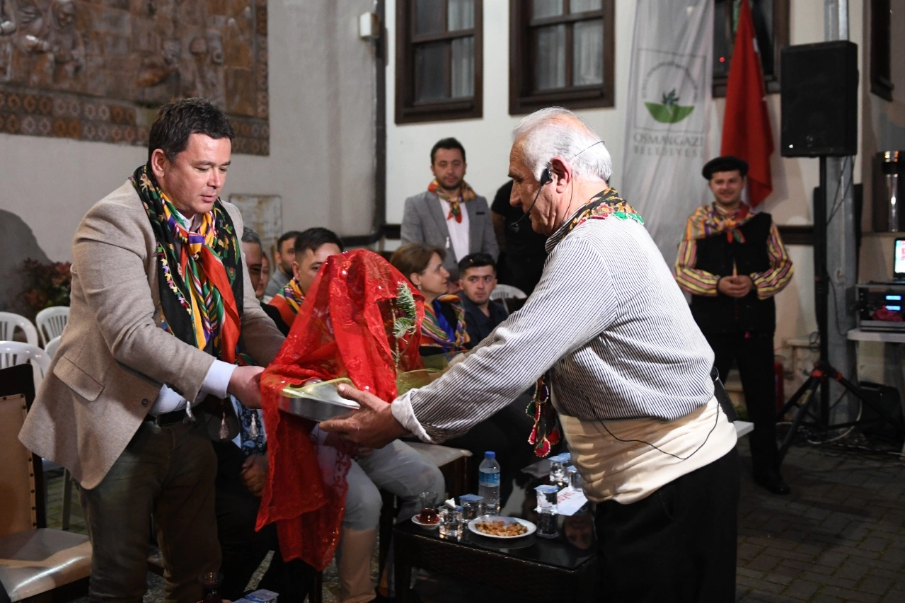 Osmangazi Belediye Başkanı Erkan Aydın, kına gecesinde yaptığı konuşmada, “Osmangazi Belediyesi olarak 20 yıldır düzenlediğimiz Osman Gazi’yi Anma ve Bursa’nın Fetih Günü Etkinlikleri ile geleneksel köy düğünü ve kına gecesi eğlencesini günümüzde yaşatıyoruz. Böyle köy düğünleri ve kına geceleri maalesef artık yapılmıyor. Gençlerimiz, ekonomik sıkıntılardan dolayı artık düğün dahi yapamaz oldu. Geleneklerimiz ve göreneklerimiz yaşasın diye Osman Gazi’yi Anma ve Bursa’nın Fetih Günü Etkinlikleri’nde köy düğünü ve köy kınası etkinliklerine yer veriyoruz. Şehir hayatı içerisinde unutulan gelenekleri, örf ve adetleri yaşatmak istiyoruz. Yeni kuşakların da bu gelenekleri tanımasını, bilmesini arzuluyoruz. Pazar günü Soğukpınar Mahallesi’nden gelin aldıktan sonra Çaybaşı Mahallesi’nde yapacağımız köy düğünü ile kültürümüze ait çok eski bir geleneği günümüze taşıyacağız. Emeği geçen herkese ayrı ayrı teşekkür ediyorum” dedi.