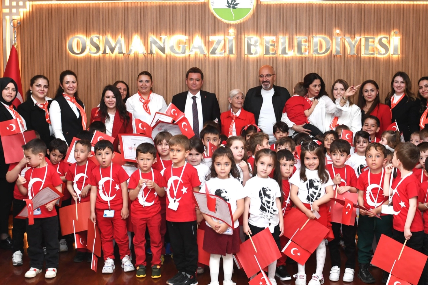 Osmangazi Belediyesi, 23 Nisan Ulusal Egemenlik ve Çocuk Bayramı kapsamında düzenlediği birbirinden özel etkinlikler ile çocuklara unutamayacakları bir bayram yaşatıyor. Düzenlenen etkinlikler ile 23 Nisan, Osmangazi’nin dört bir yanında büyük bir coşkuyla kutlanıyor. Osmangazi Belediyesi tarafından kente kazandırılan Ayça Azak Gündüz Bakımevi ve Çocuk Kreşi’nde eğitim gören minik öğrenciler, kendileri için bu güzel etkinlikleri düzenleyen Osmangazi Belediye Başkanı Erkan Aydın’a teşekkürlerini iletmek için ziyarette bulundu.