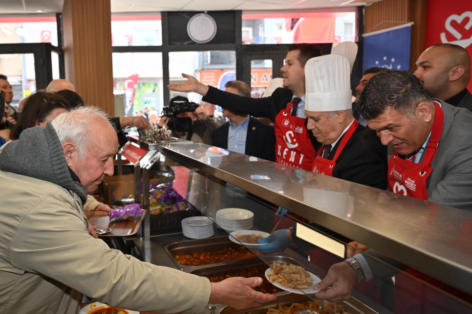 4 çeşit yemeğin 80 TL’den verileceğini söyleyen Başkan Mustafa Bozbey, “Ekonomik zorluklar kapımızı çalabiliyor, bütçemiz sarsılabiliyor. Tam da böyle dönemlerde, birbirimizin halini gözetmek, dayanışma göstermek hepimizin sorumluluğudur” dedi. Sosyal belediyecilik anlayışıyla insan odaklı hizmetlere öncelik veren Bursa Büyükşehir Belediyesi, vatandaşların uygun fiyata ve sağlıklı yemeğe ulaşabilmesi amacıyla ikinci Kent Lokantası'nı, Yıldırım İlçesi Vatan Mahallesi’nde hizmete açtı. Hijyenik koşullarda hazırlanmış, besleyici ve lezzetli 4 kap yemek, yanında ekmeği ve suyu ile birlikte vatandaşlara 80 TL’den sunulacak. Vatan Kent Lokantası, hafta içi her gün saat 11.30 ile 15.00 arasında hizmet verecek. Vatan Mahallesi’nde düzenlenen törene, Büyükşehir Belediye Başkanı Mustafa Bozbey’in yanı sıra CHP Bursa Milletvekili Hasan Öztürk, Büyükşehir Belediyesi Genel Sekreteri Doç. Dr. Ergül Halisçelik, CHP Yıldırım İlçe Başkanı İlhami Gün, Büyükşehir Belediyesi bürokratları, meclis üyeleri, muhtarlar ve vatandaşlar katıldı.