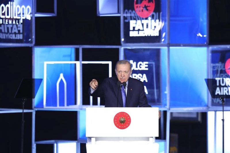 Türkiye denince zihinlerde sadece siyasi sınırların canlanmadığını, bunun ötesinde geniş bir gönül ve kültür coğrafyası akıllara geldiğini ifade eden Cumhurbaşkanı Erdoğan, "Üstat Necip Fazıl'ın 'Anladım işi, sanat Allah'ı aramakmış. Marifet bu, gerisi yalnız çelik çomakmış' mısralarında ifade ettiği maveranın, ötelerin marifet ve hakikatin peşinden işte bu imanla koşarız. Bu bakımdan 'Gölge varsa ışık da vardır' sözü, umudu müjdeliyor, mücadeleyi salık veriyor, inanç ve gayreti telkin ediyor. Her gecenin bir sabahı olduğunu, aydınlığın ve inancın küfre mutlaka galip geleceğini işaret ediyor. Merhum Sezai Karakoç'un 'Geceyi onaran bir mimar vardır' dediği o mimarın hikmetine vasıl olmayı Rabbim hepinize, hepimize nasip eylesin diyorum. Yeditepe Bienali'ni Türkiye'nin kültürel birikimini evrensel bir sahneye taşıyan kıymetli bir platform olarak görüyoruz. Buradaki eserlerin hal dili, dünyaya 'Bizim de söyleyecek sözlerimiz var', 'Yüksek bir estetik anlayışımız', 'İnsanlığın hazinesine katacak eşsiz mücevherlerimiz var' diyor. Hat, tezhip, ebru, minyatür gibi kadim sanatlarımız bu bienal vesilesiyle ülkemizin marka değerine küresel çapta önemli bir katkı sağlıyor. Kültürel diplomasimize dinamizm kazandırıyor. Bugün Türkiye denince zihinlerde sadece siyasi sınırlarımız canlanmıyor. Bunun da ötesinde geniş bir gönül ve kültür coğrafyası akıllara geliyor. Resmi kurumlarımız, vakıflarımız, derneklerimiz ve daha niceleri gönül coğrafyamızdaki dost ve kardeşlerimizle olan muhabbetimizi günden güne pekiştiriyor. Yeditepe Bienali'ni Türkiye'nin kültürel birikimini evrensel bir sahneye taşıyan kıymetli bir platform olarak görüyoruz. Buradaki eserlerin hal dili, dünyaya 'Bizim de söyleyecek sözlerimiz var', 'Yüksek bir estetik anlayışımız', 'İnsanlığın hazinesine katacak eşsiz mücevherlerimiz var' diyor. Hat, tezhip, ebru, minyatür gibi kadim sanatlarımız bu bienal vesilesiyle ülkemizin marka değerine küresel çapta önemli bir katkı sağlıyor. Kültürel diplomasimize dinamizm kazandırıyor. Bugün Türkiye denince zihinlerde sadece siyasi sınırlarımız canlanmıyor. Bunun da ötesinde geniş bir gönül ve kültür coğrafyası akıllara geliyor. Resmi kurumlarımız, vakıflarımız, derneklerimiz ve daha niceleri gönül coğrafyamızdaki dost ve kardeşlerimizle olan muhabbetimizi günden güne pekiştiriyor" dedi.