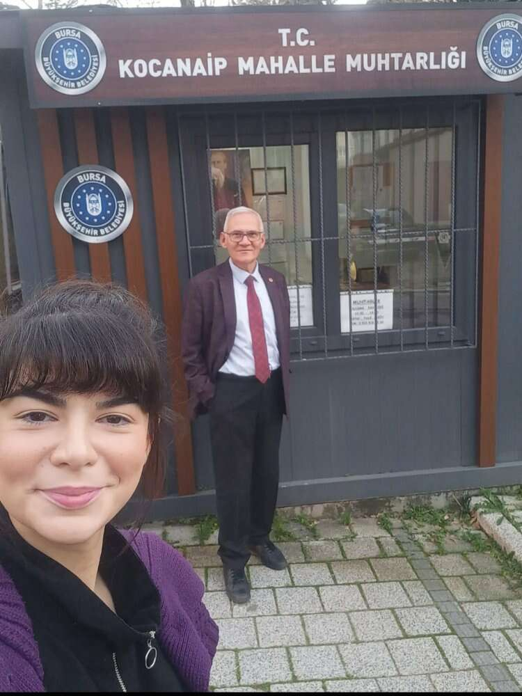 Kocanaip mahallesi Osmangazi İlçesi’ne bağlı. Adı, Yıldırım Bayezid’in Kadısı olan Kocanaip Hazretleri’nden geliyor. Burada onun adına yapılan bir cami mevcut. Muradiye’de Türklerin yerleştiği tek mahalle burası. Yaklaşık 4 bin nüfus var ve bin yedi yüz seçmen bulunuyor. Mahallemizde orta ve alt gelir grubuna yakın insanlar yaşıyor. Yüzde 60’ı yaşlı, gençler oldukça az. Sakin, asayiş sıkıntısı fazla olmayan bir yer. Diğer mahallelerden bazen haberler geliyor: “Rögar, ızgara kapakları çalındı” diye. Bizde böyle şeyler yok. Yabancıların gelip yerleşmesi de pek mümkün değil. İmar sorunu olduğu için yeni yapılan ev yok, olanlar dolu. Boş daire olmayınca, yabancılar gelemiyor. Haliyle demografik yapı bozulmuyor. Deprem açısından da güvenli bir yerdeyiz. Ayrıca turizm için önemini de unutmayalım!
