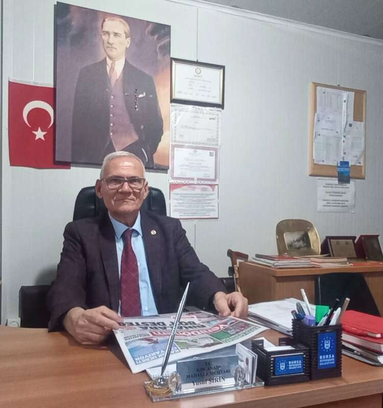 Peki, gelip geçerken dar sokaklarını, araç park edecek yer olmadığını, tur otobüslerinin Muradiye Külliyesi civarında duracak bir alan bulamadığı için, gelen misafirleri Zindan Kapı’da bıraktığını fark ettiniz mi? Belki ‘tarihi yerlerin ortak kaderi bu’ diyerek görmezden gelebiliriz. Ama içinde yaşayanlar için geçiştirilebilecek bir sorun değil! Mahallenin özelliklerini, bugüne kadar yapılanları ve yapılması gerekenleri, şu anki sorunlarını Osmangazi İlçesi Kocanaip Mahallesi Muhtarı Yusuf Şirin’den dinledim. İlginçtir ki; görüşmek için gittiğim muhtarlık ofisi, olması gerektiği gibi mahallede değil, Sultan II. Murat Parkı’nın yanı başında duruyor! Haliyle önce Muhtar Yusuf Şirin’le ofiste konuştuk sonra mahalleyi görmek için dolaşmaya çıktık…